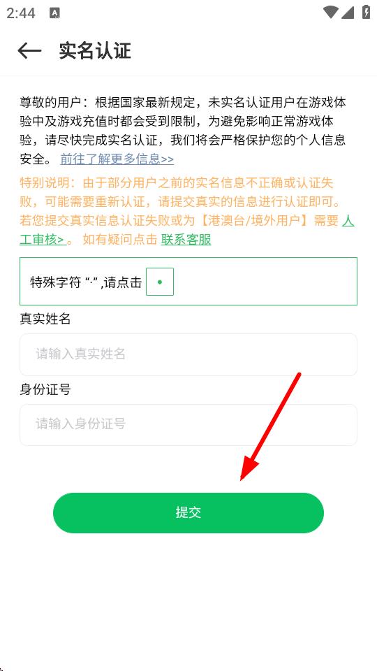 4、在实名认证页面,输入真实姓名和身份证号,确认无误后点击提交,即可完成实名认证。