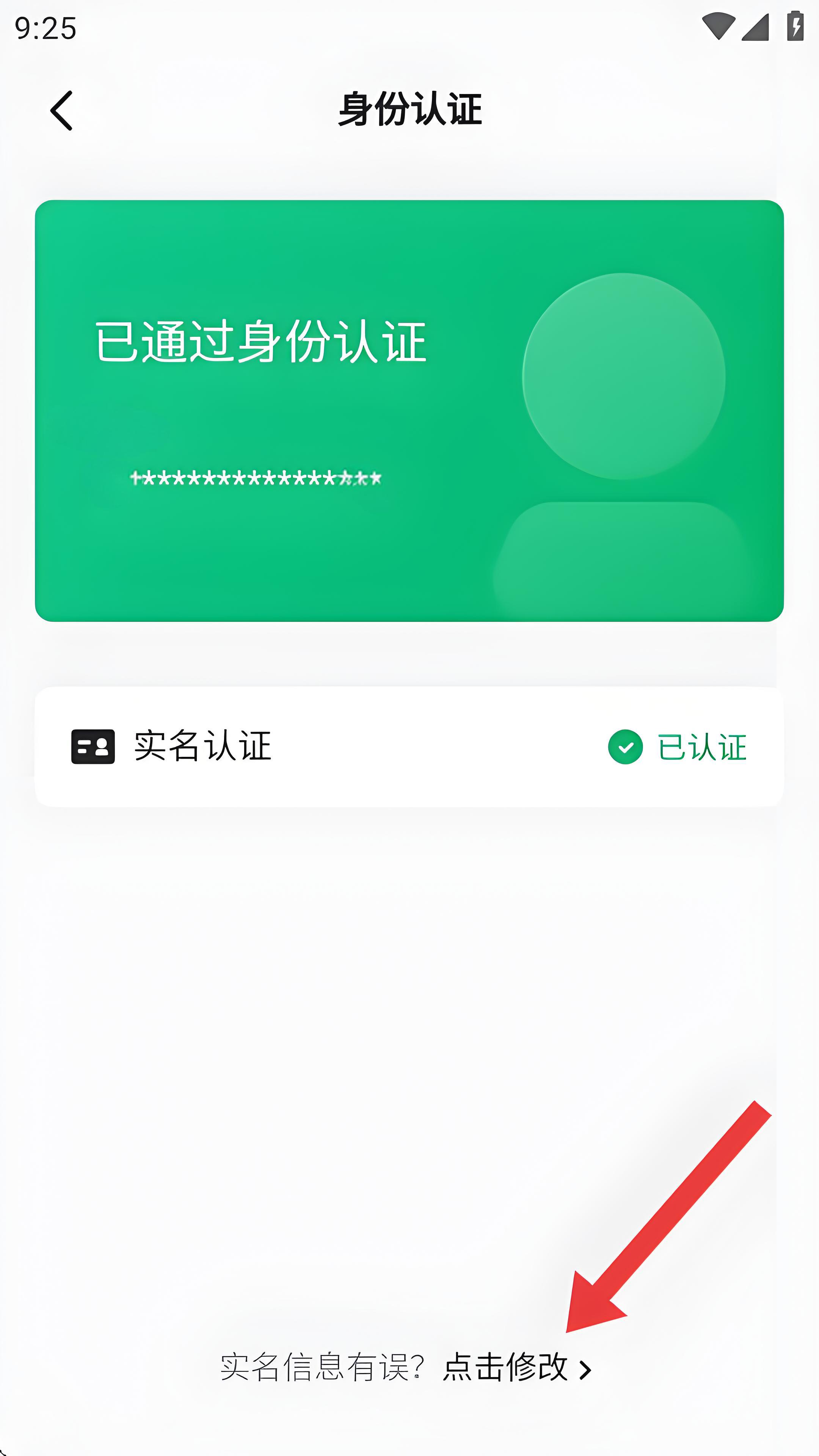 3、在身份认证页面里,点击底部实名信息有误点击修改,按系统提示提交资料完成实名认证修改。