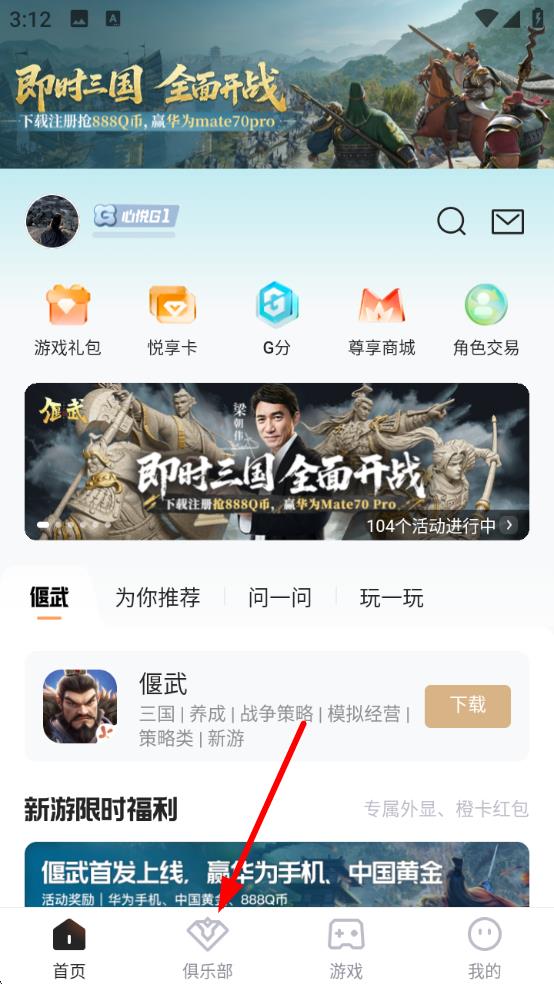1、打开腾讯心悦俱乐部APP,在首页点击底部导航栏中的俱乐部选项,进入游戏家俱乐部界面。