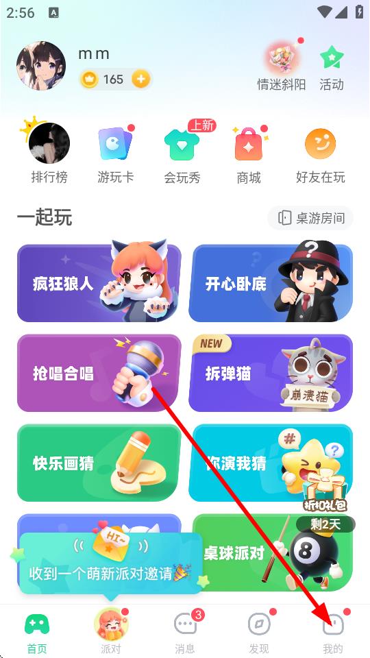 1、打开会玩App,点击底部导航栏我的进入个人页面。