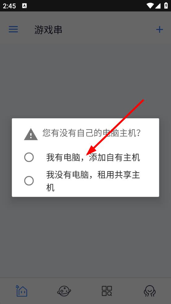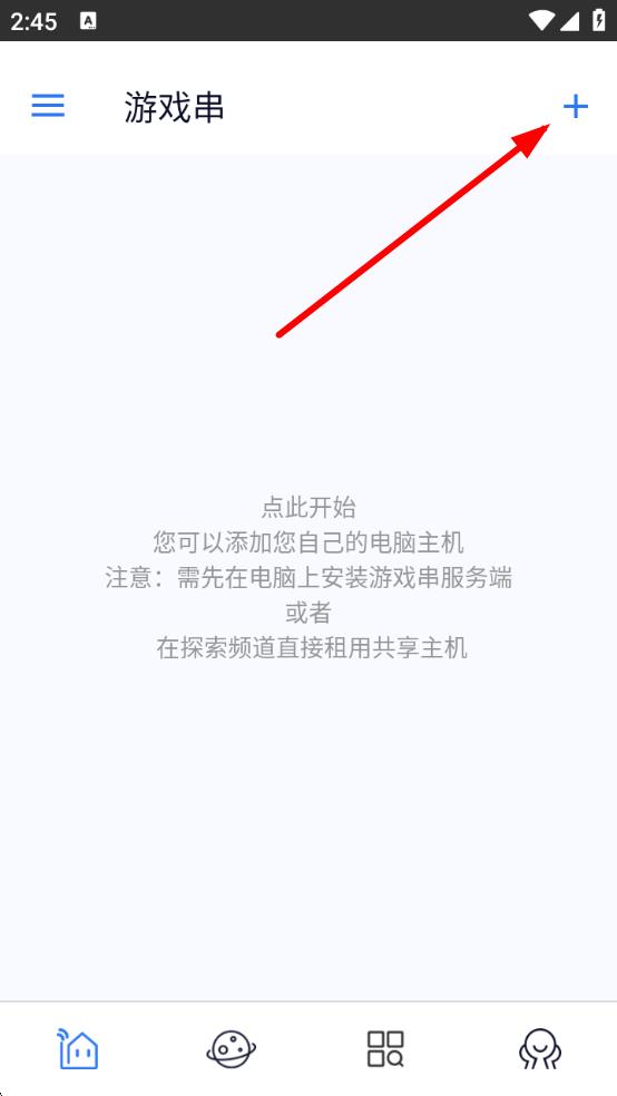 2、在游戏串主页界面,点击右上角的加号图标,准备进行添加主机的操作。