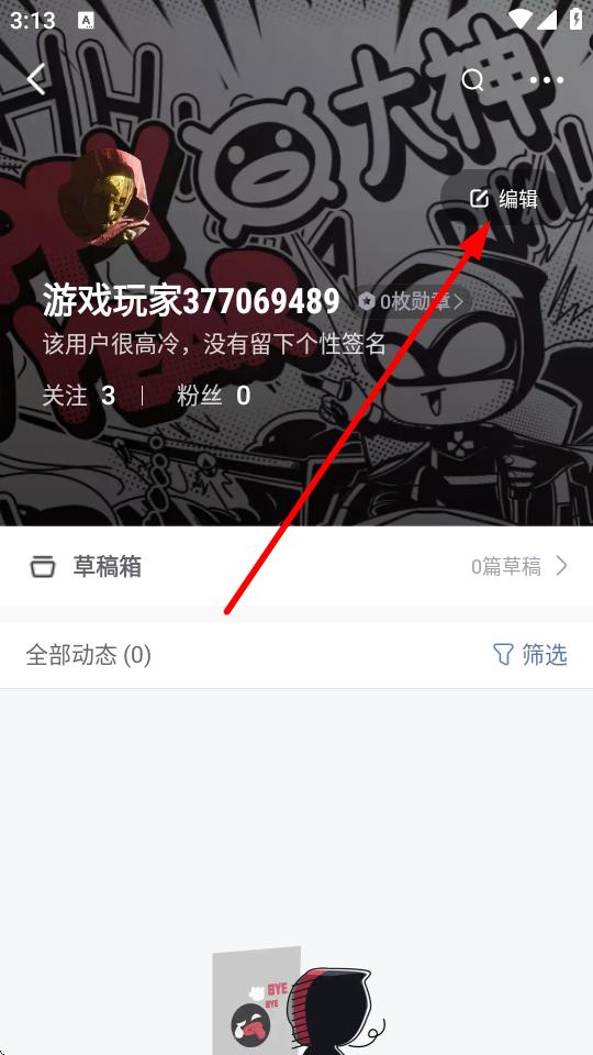 3、在个人主页界面右上角,点击编辑按钮,进入编辑个人资料页面。