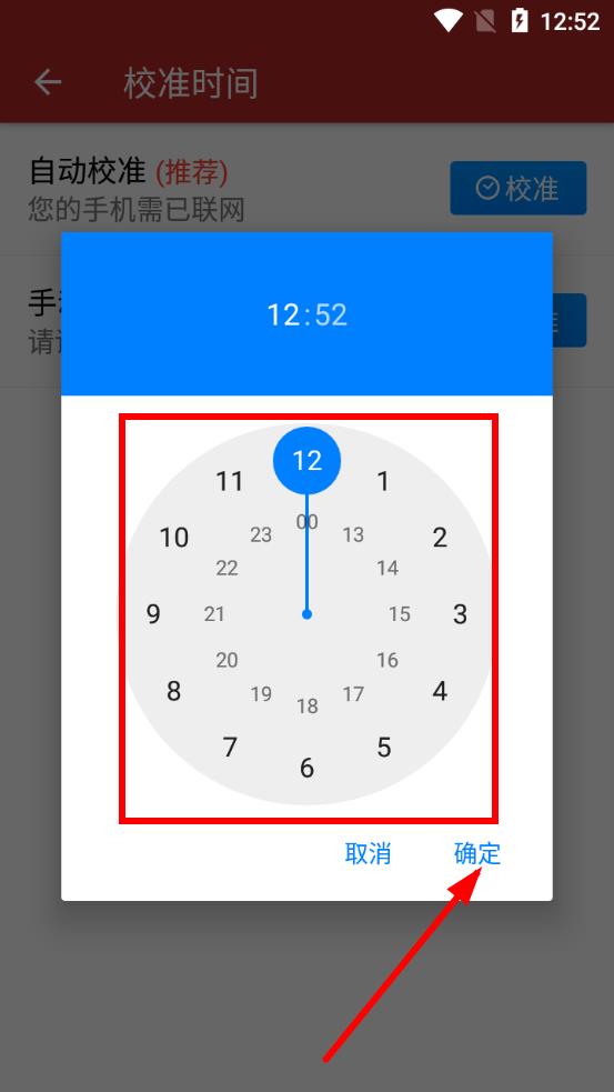 4、在弹出的时钟界面中调整时间,调整好后点击确定,即可完成手动校准设置。