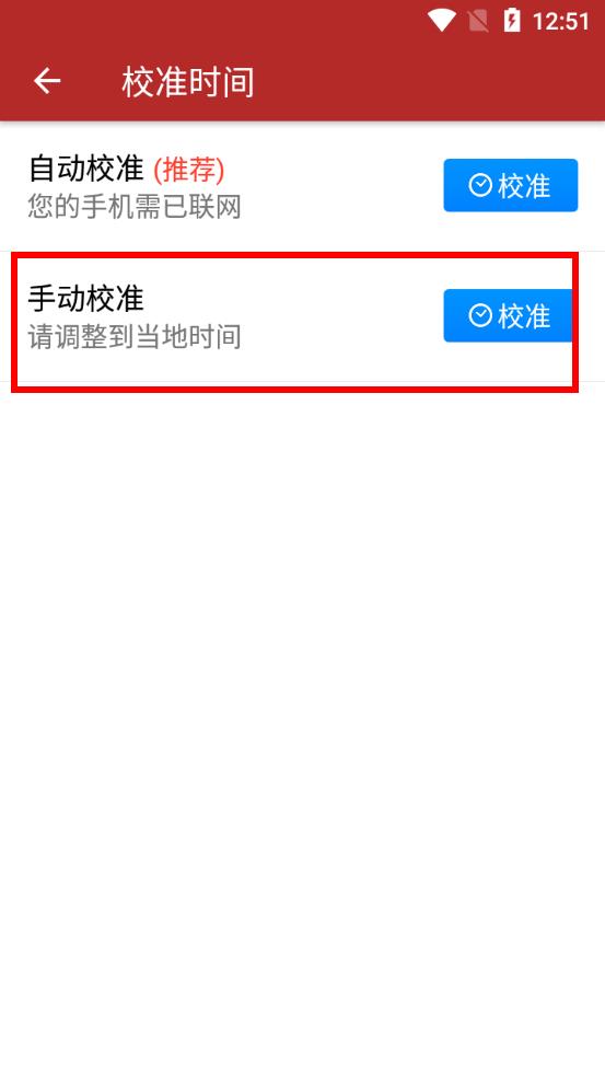 3、在时间校准界面里找到手动校准区域,点击其右侧的校准按钮。