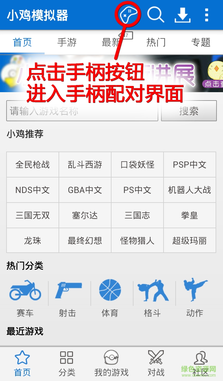 1、打开小鸡模拟器游戏大全,点击顶端的手柄按钮