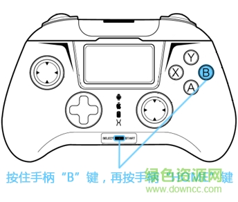 根据第一步提示启动手柄时,按住手柄“B”键,再按手柄“HOME”键启动手柄;这个模式同上面按住A键进入区别无鼠标模式功能,连接后仅亮起指示灯图标