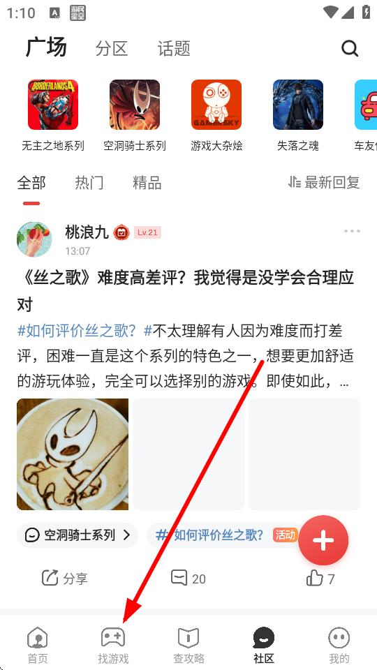 1、打开游民星空APP,点击底部导航栏中的找游戏选项进入相关页面。