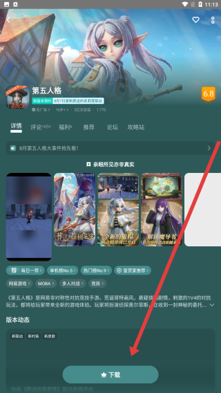 3、进入第五人格的游戏详情页面,了解游戏背景等内容后,点击底部绿色下载按钮,开始安装游戏。