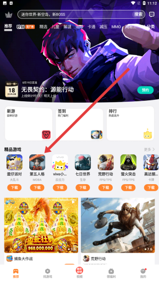 1、首先在本站下载安装好软件后,点击软件,就能看见软件有推荐的很多不同类型的游戏,大家可以根据自己的兴趣自行下载,随后点击进入首页;