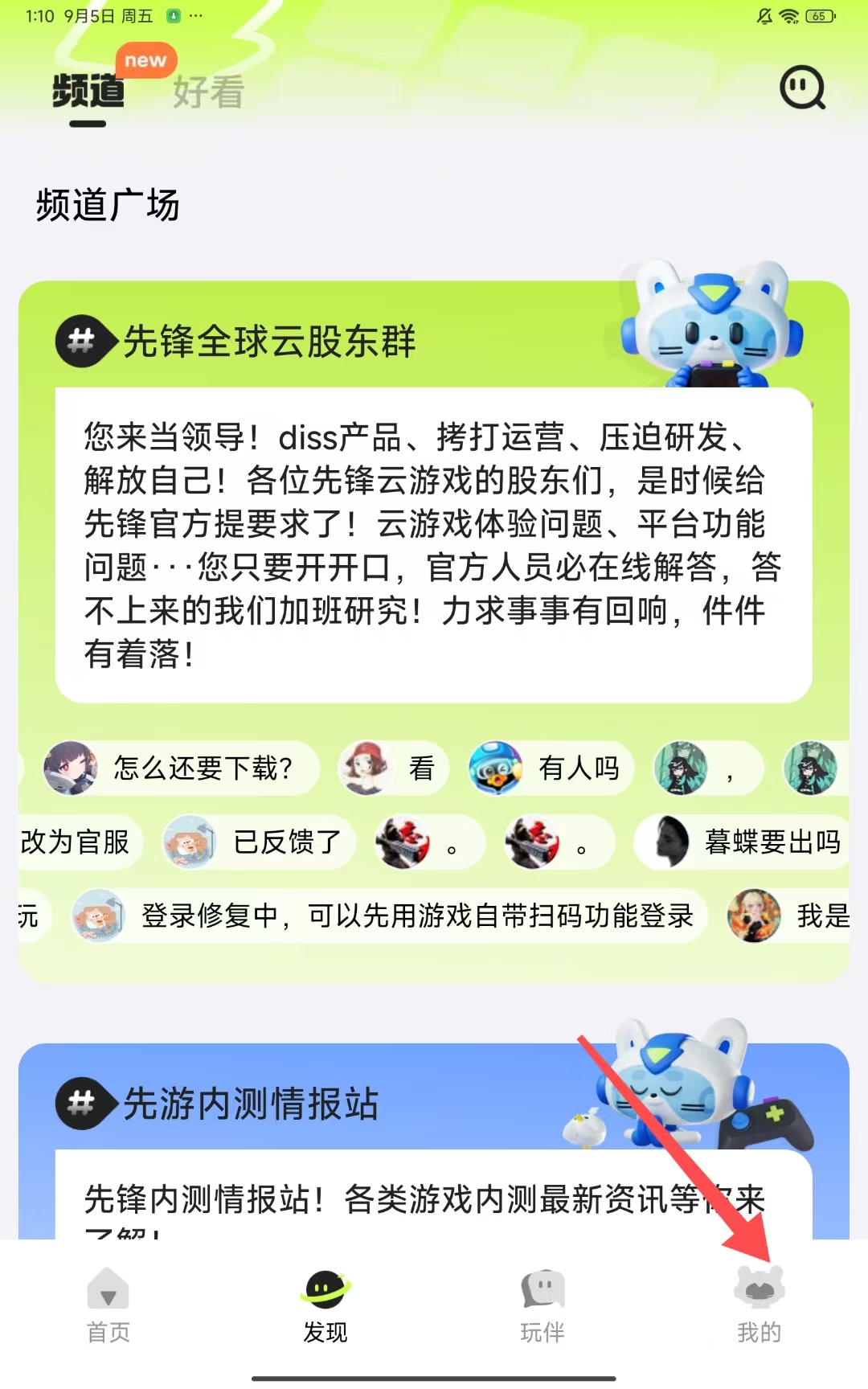 1、打开腾讯先游APP,点击底部导航栏中的我的选项。