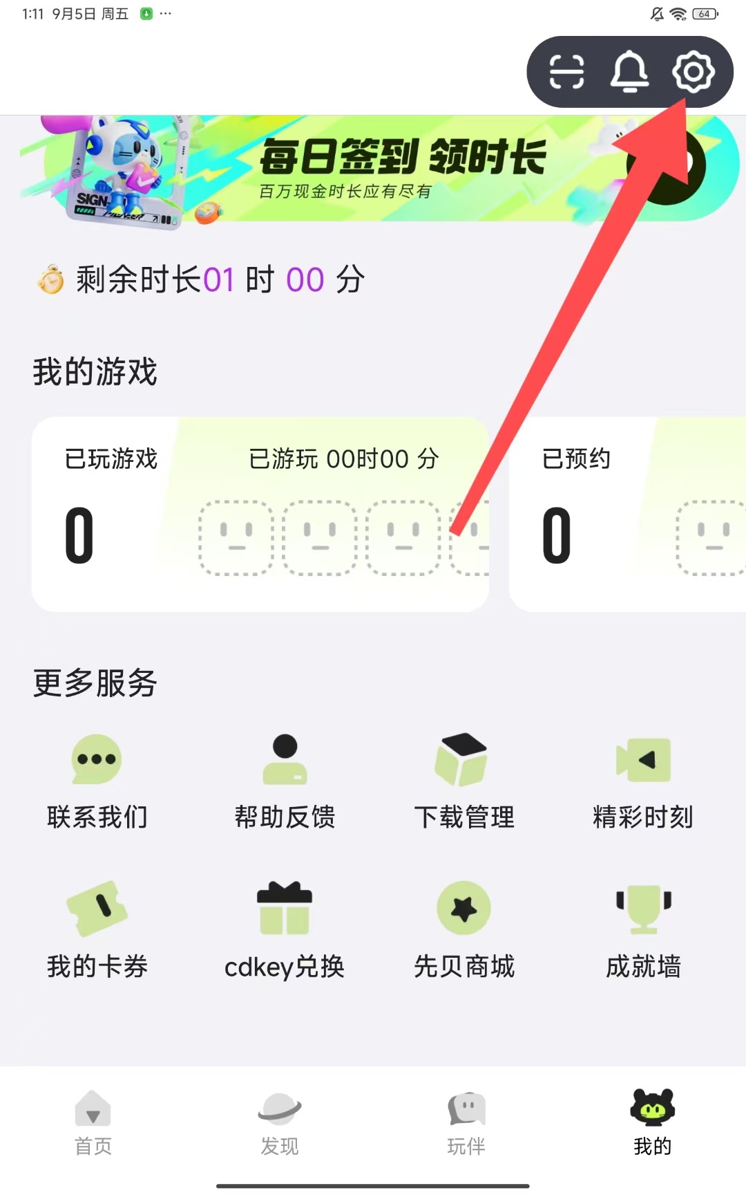 2、在我的页面,点击右上角的设置齿轮图标。