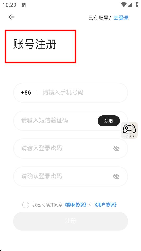 3、进入账号注册页面,输入手机号码并点击获取短信验证码,输入收到的验证码,设置登录密码并确认密码,勾选同意。