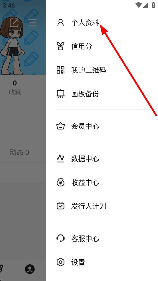 3、在侧边菜单里,点击个人资料选项,进入个人资料编辑页面。