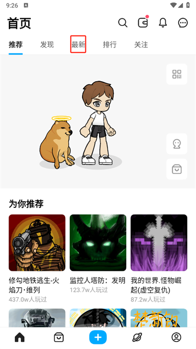 1、进入到软件之中后,可以点击屏幕之中的【最新】按钮,以看看最近有什么新的游戏创意;
