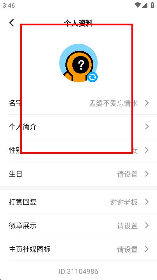 4、在个人资料页面,可以对头像、名字、个人简介、性别等信息进行修改,点击对应的选项,按提示操作完成修改。