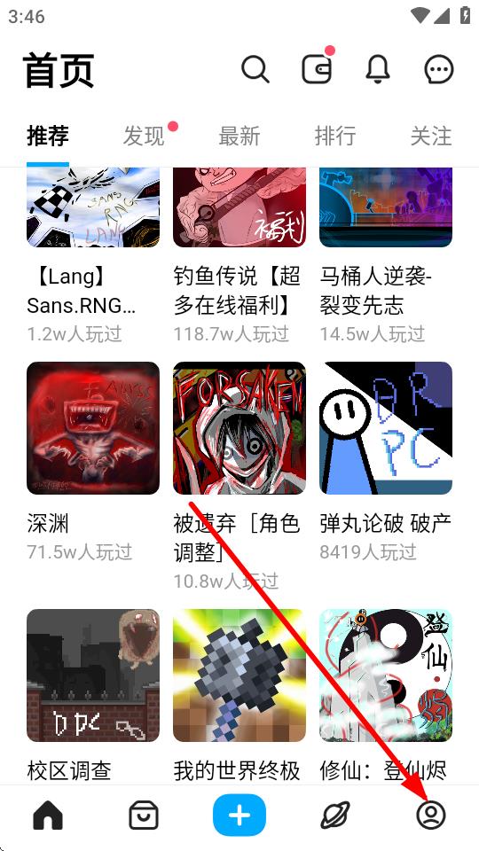 1、打开创游编辑器应用,点击底部导航栏最右侧的人物图标,进入个人页面。