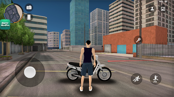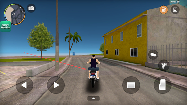 4、通过操控键驾驶摩托车,在城市道路中行驶,体验驾驶玩法。