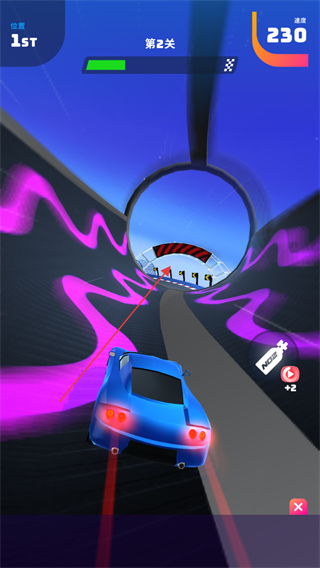 2、穿过彩色隧道时,注意躲避隧道内的障碍物,同时利用隧道地形保持高速行驶。