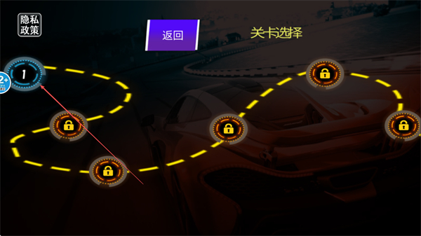 1、在关卡选择界面,点击解锁的关卡1,进入对应赛车关卡。
