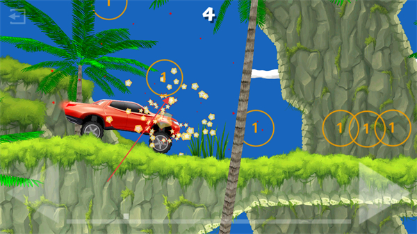 4、在山间平台行驶时,继续撞击金币圈收集金币,积累分数,顺利完成爬坡赛。