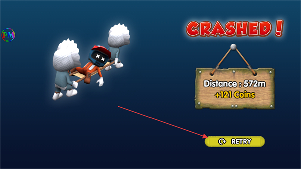 4、中途如果赛车坠毁,查看金币奖励后,点击RETRY重新挑战。
