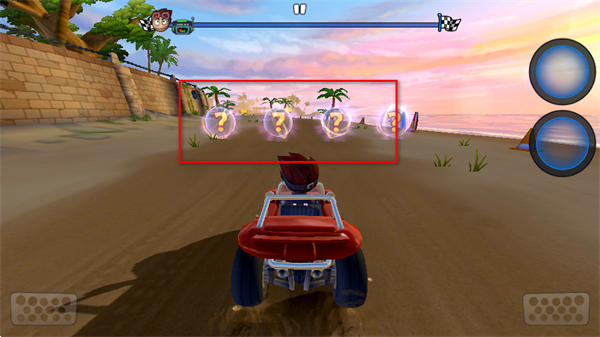 4、在赛道上驾驶赛车撞击带有问号的泡泡,可随机获得道具,助力赛车比赛进程。
