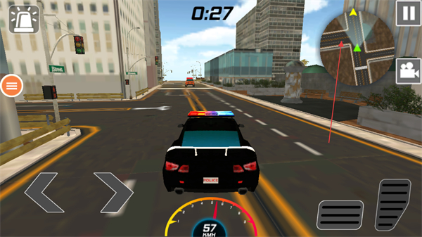 1、操控警车通过左右按钮调整方向、油门键加速,根据小地图指引追击目标车辆。