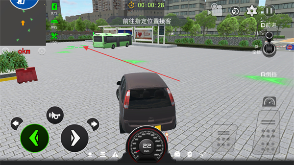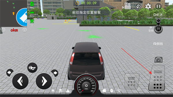 4、跟随地图指引左上角小地图,在城市道路中行驶,注意交通规则,按时到达指定位置完成接客任务。