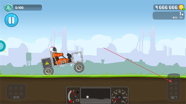1、操控赛车,点击油门加速前进,同时可借助刹车调整车速,平稳行驶。