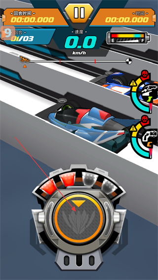3、进入比赛界面后,点击界面中的核心按钮,即可启动四驱车,开启当前回合的竞速挑战。