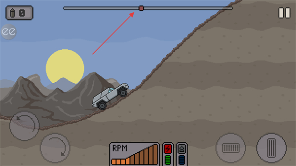 2、驾驶赛车爬坡,注意上方进度条,推进游戏进程。