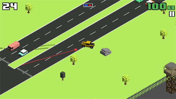 1、操控黄色目标车辆在公路上行驶,躲避其他车辆如轿车、货车,积累分数左上角数字。