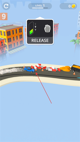 2、释放蓄力,让赛车加速前进,冲破路障,继续向终点冲刺。