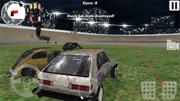 1、操控方向盘移动车辆,主动撞击敌方车辆,削减其耐久度,直至摧毁目标如摧毁Rusty。