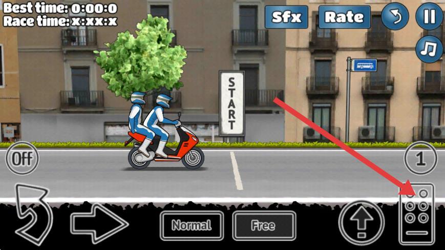 4、屏幕右下角的按钮组可以用来控制摩托车停下,保持平衡,让摩托车顺利到达终点。