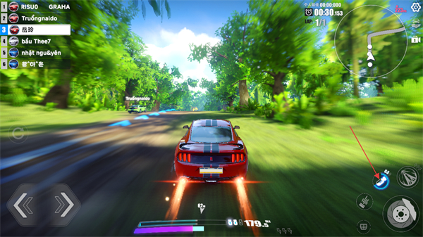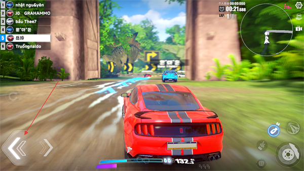 3、进入赛车比赛后通过左侧方向控制键操控车辆转向跟随赛道指引保持车辆在赛道内行驶以提升比赛排名。