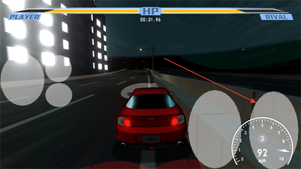 3、提升车速如到92mph,逼近对手车并发起碰撞,消耗其HP。