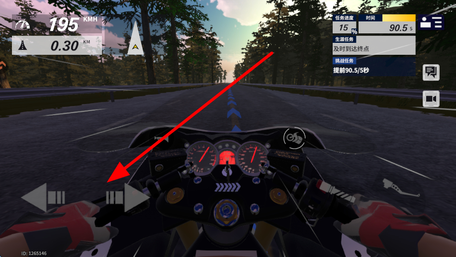 2、接着进入摩托驾驶场景,操控摩托在道路上行驶,通过加速操作部件,控制摩托的速度,让摩托保持合适的行驶节奏。