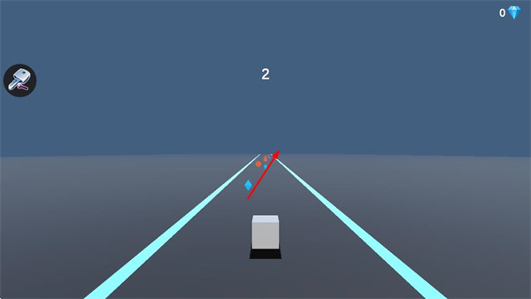 3、持续操控方块避开出现的障碍物,保持方块在道路范围内行进。