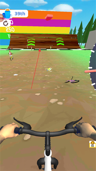 1、进入游戏,留意屏幕左上角排名,如59th,操控自行车在赛道前进。