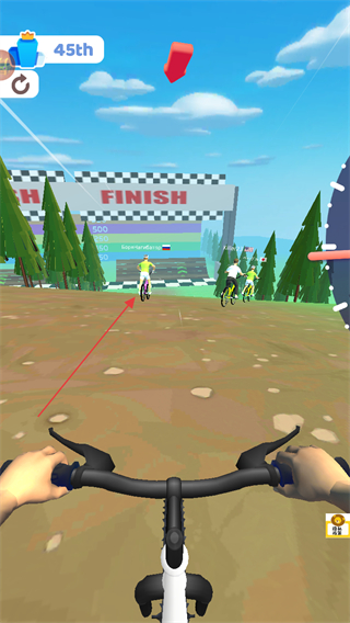 2、朝着终点FINISH标志骑行,同时观察前方对手位置,找机会超越。