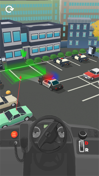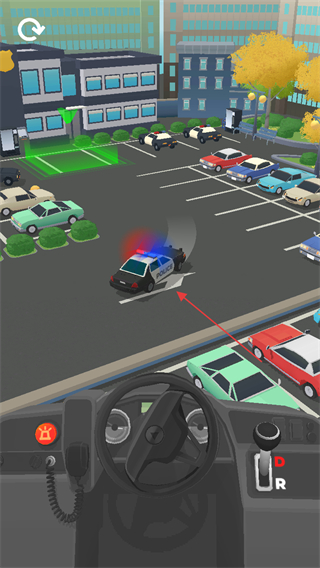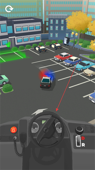 1、操控警车在停车场内行驶,躲避其他车辆,向目标区域移动。