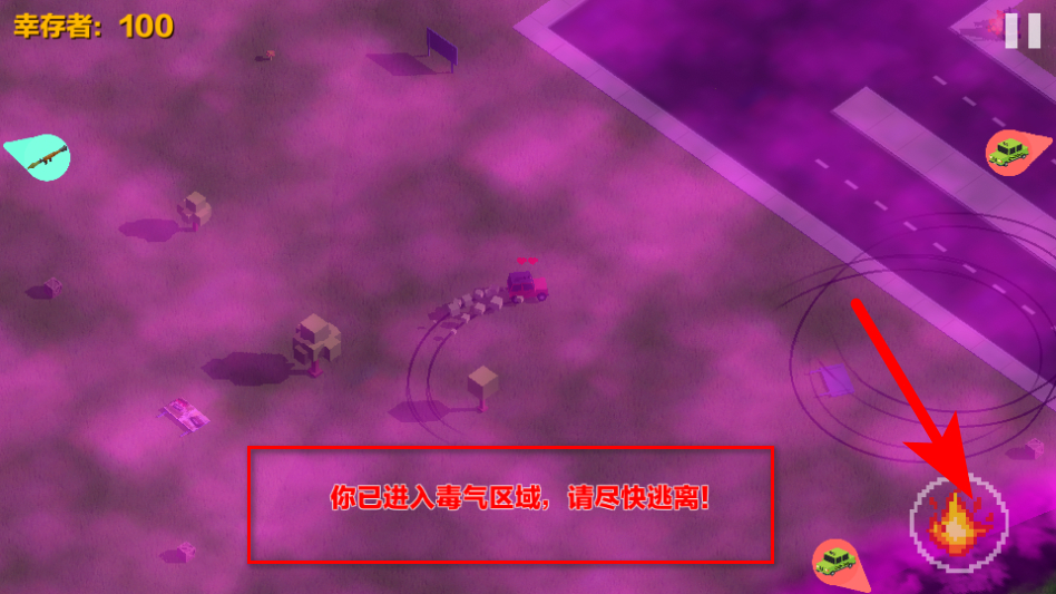 4、注意避开毒气区域,若进入需尽快逃离,同时利用攻击手段淘汰对手,争取成为最后的幸存者。