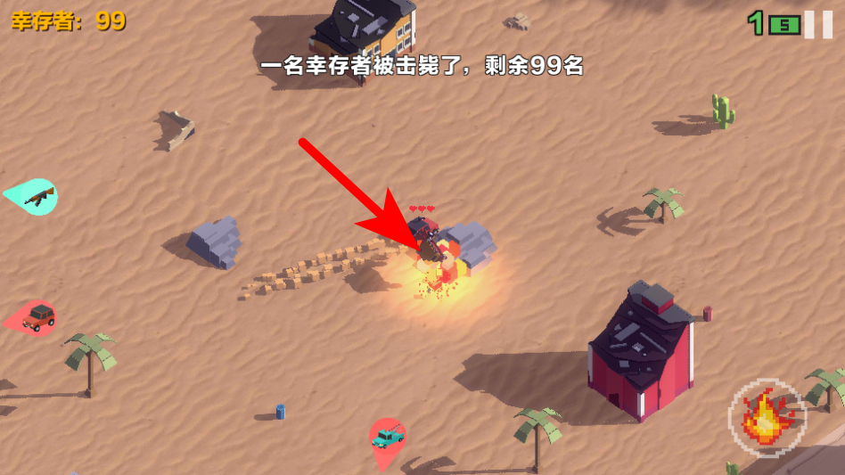 2、在游戏中驾驶汽车撞击其他幸存者,减少幸存者数量,提升自己的生存优势。