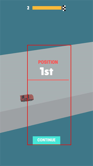 4、等待赛车冲过终点后,界面显示POSITION1st提示,点击CONTINUE按钮进入后续环节。