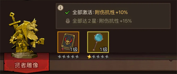 组合加成:解锁指定组合激活圣物效果,如贤者雕像组合提升附伤抗性,关注组合联动,优先收集核心组合遗物,最大化属性收益。