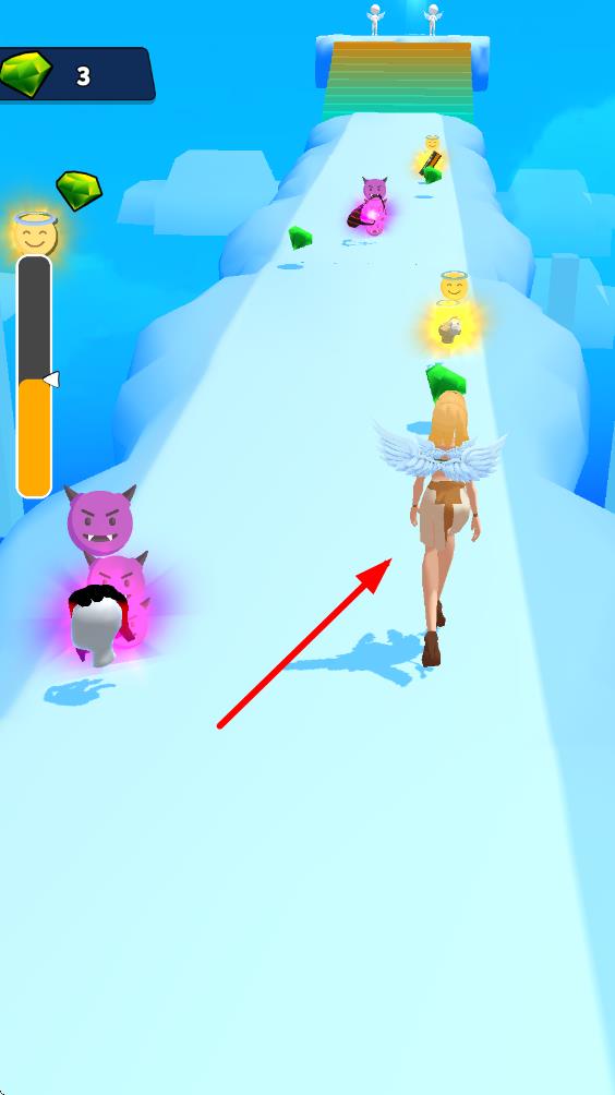 1、进入后操控女孩在道路上奔跑,滑动屏幕躲避坑洞、减速带等障碍,遇到分岔路时根据天使(正确)与魔鬼(错误)的提示选择前进方向。