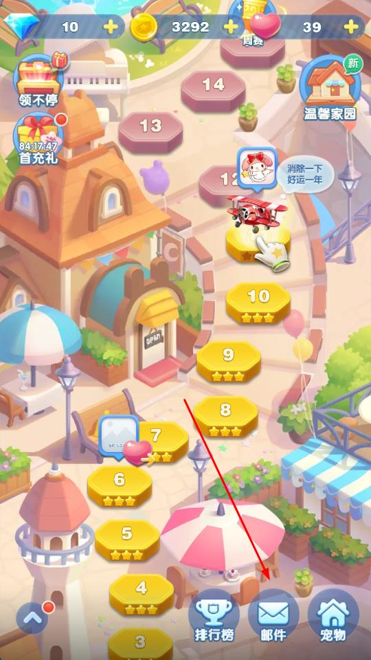 1、打开天天爱消除游戏,进入游戏主界面,点击下方的邮件图标。