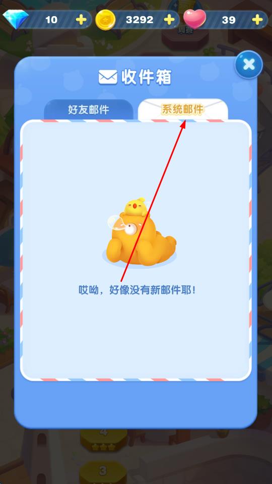 2、进入收件箱界面,点击系统邮件选项卡,可查看系统发送的通知、奖励等邮件。