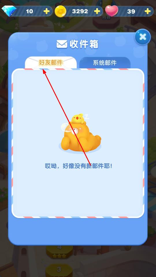 3、点击好友邮件选项卡,能查看好友发送的邮件,比如赠送的爱心等信息。